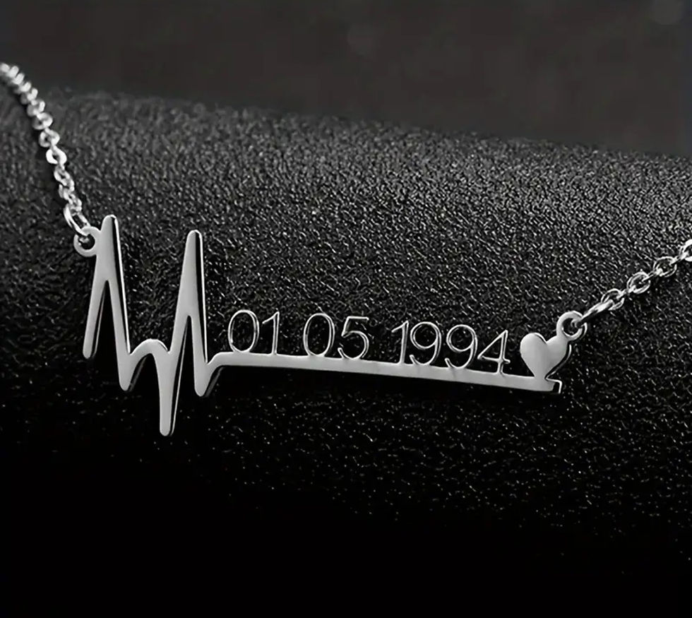 Collier battement de cœur personnalisé – date gravée en or ou argent | IJK Bijou